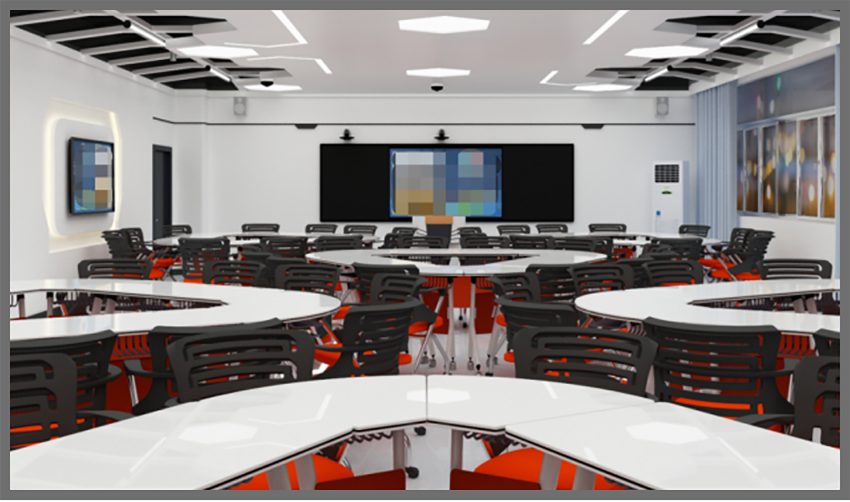 精品录播室主要用于精品课程的录制而建设的特定智慧功能空间,它将授课电脑信号、老师授课和师生互动场景以及课堂板书等进行智能化的跟踪切换录制,自动生成优质精品课程资源。